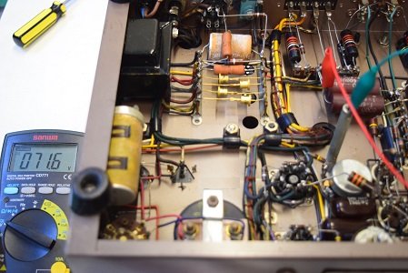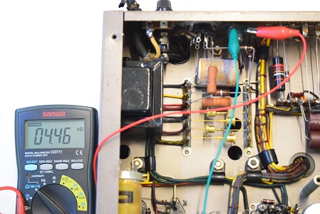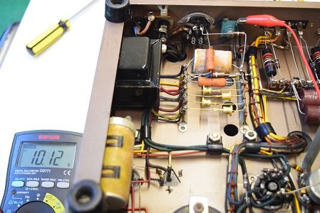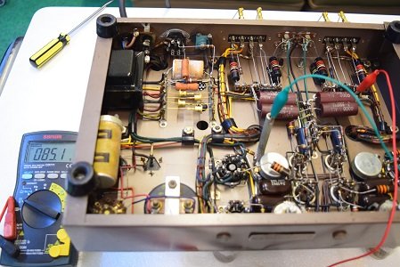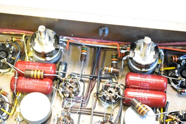 初段管カソードバイパスコンも純正SPRAGUEの新品に交換しました。左チャンネルのACバランスが取れなかったのでA1側の抵抗を交換しました。