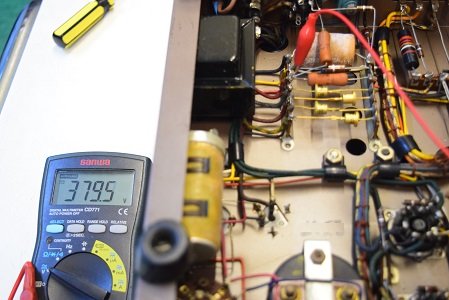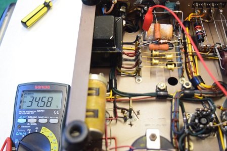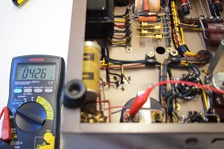 高圧の出力管プレート電圧です。426Vを表示しこちらも低い値です。