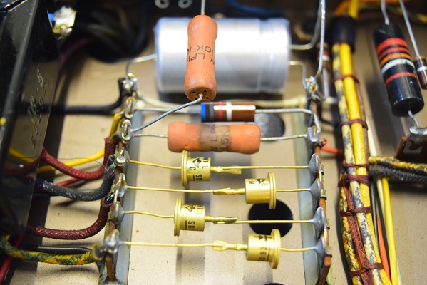 こちらは出力管のカップリングコンデンサーです。(焦げ茶4個)