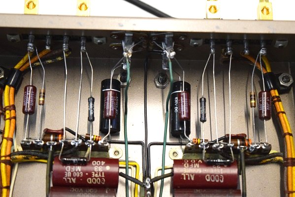 上部の電解ブロックコンデンサーをオリジナル仕様の新品に交換しました。