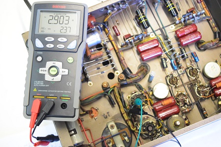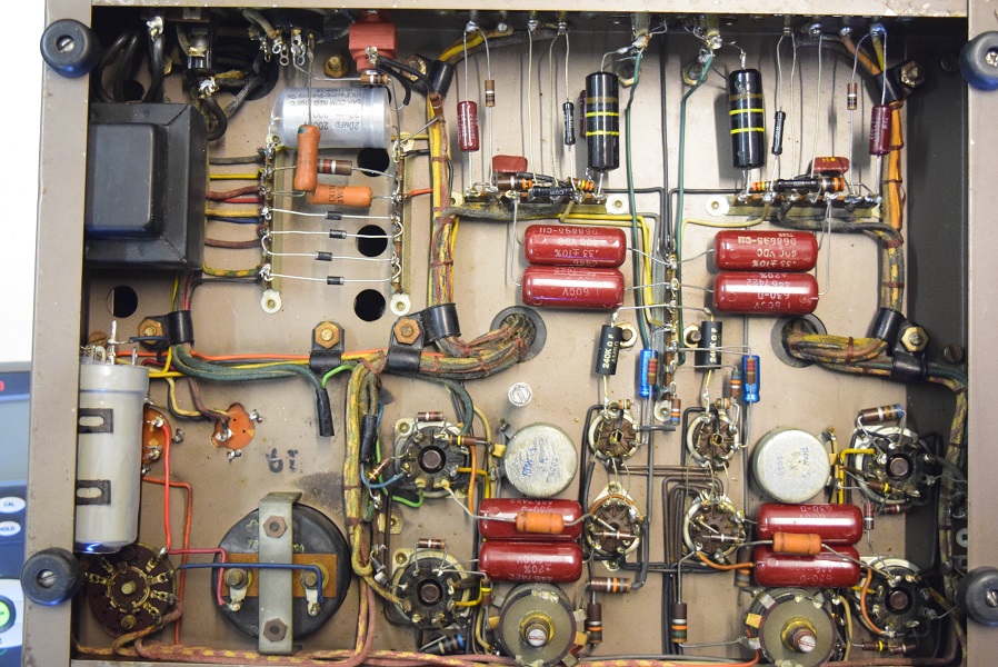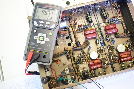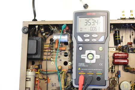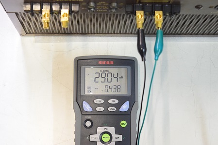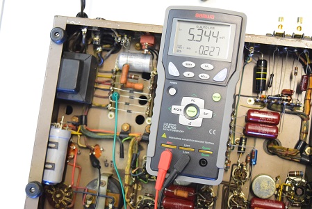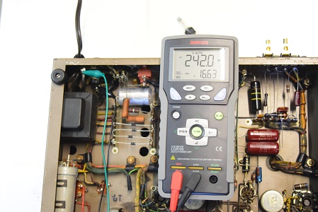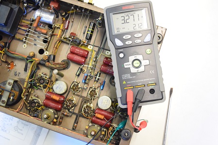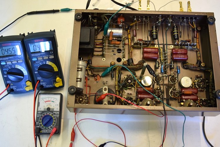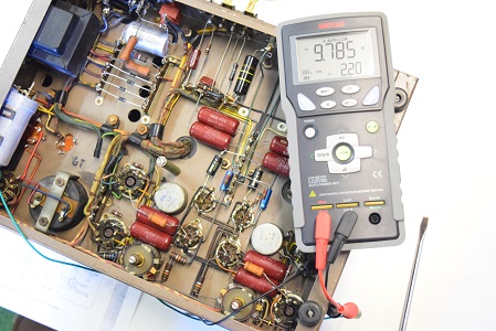 電源を入れて各電圧を計ります。出力管のプレート電圧やバイアス電圧なども4本とも良好です。