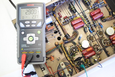 ★スピーカー切り替え機を操作すると瞬間的に出力トランスの2次側は開放になり、これが1次側コイルに高電流が流れ、出力管に大電流が流れます。これにより周辺の抵抗やコンデンサー類が過電流から燃えたり破損したりすることにより電源回路にも大電流が流れヒューズが飛びました。