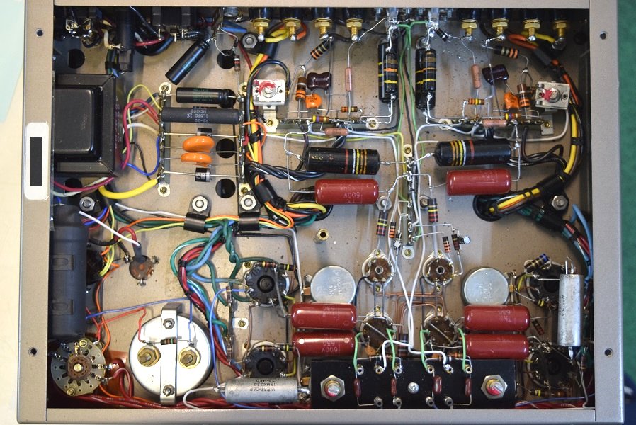 音はこちらにあるもう2台の#8Bオリジナルと変わらない澄み切った良質の音に変わりました。しかも、電源回路のブロックコンデンサーやバイアスコンデンサーも新しいためより音に安定感があり、テレフンケンの出力管の特性も加わってこちらの#8Bオリジナルとは少し感じが違って、華やかさが加わった透明感のある良い音になっています。