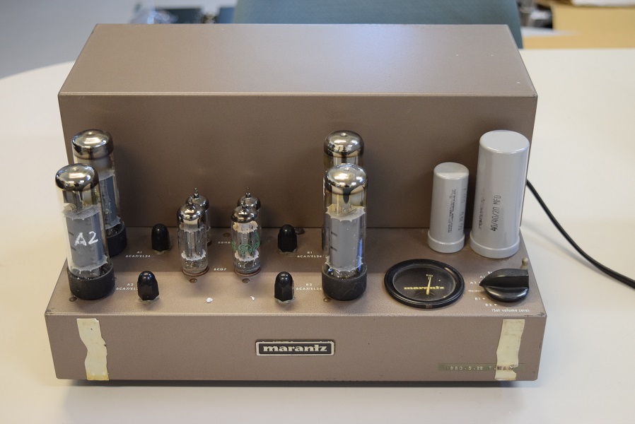 しかし、今回長期休眠状態で無通電時間が長くなるなど、コンデンサーに完全に電荷が無い状態で、且つトランスの経年劣化も加わり、電源を入れると高容量のコンデンサーでは最初の充電量が莫大になるので、大きな突入電流が電源トランスに流れます。これにより電源トランスの1次側がショートし、2次側に異常な高電圧大電流が発生しバイアスメーターが焼け切れた。しかも出力トランスの電源に近い側の2次側も高圧B電圧が最初に直接掛かるのでショートしたと考えます。突入電流位の瞬時の電流ではヒューズは飛びません。マランツのトランスは巻線が細いので経年でボロボロになり、過電流で切れやすいのも特徴です。