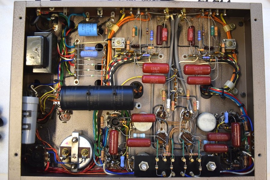 気になったのが高圧B電源回路に大容量の電解ブロックコンデンサーが追加されています。容量が大きければリプルが少なくなり良い音になると考えられたと思います。昔の技術雑誌にはこう書かれ、見習って付けられた方も多いと思います。