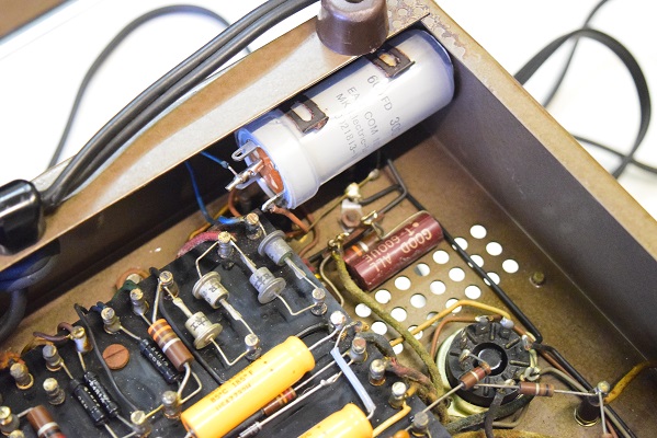 かなり状態が悪い電解ブロックコンデンサーをオリジナル仕様の新品に交換しました。