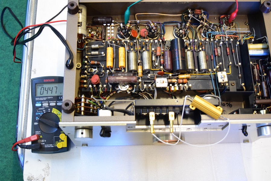 各部をチェックしてから新しいヒューズに交換し電源を投入します。特にヒューズが飛ぶことも無く、すぐに各部の電圧チェックとバイアス調整に入りました。