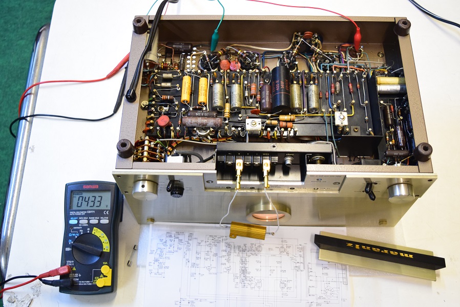 以前当工房でレストアしたMarantz9オリジナルです。 今回片側のアンプのヒューズが飛ぶようになったので修理を依頼されました。