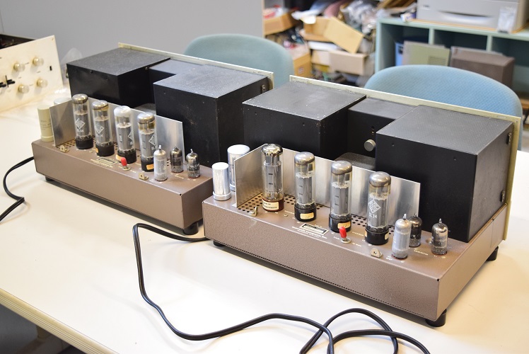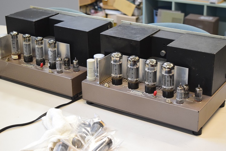 こちらのアンプは出力管が1本他銘柄に交換されています。こちらの他のTelefunken EL34も中が黒くなってかなり使い込まれています。
