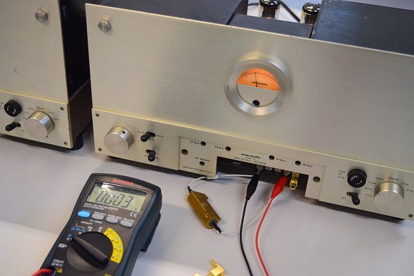 こちらは問題のない方のアンプですが、出力管4本ともバイアス調整ができません。4本とも画像の様に針がメモリまで到達せきません。電源回路の再チェックが必要です。