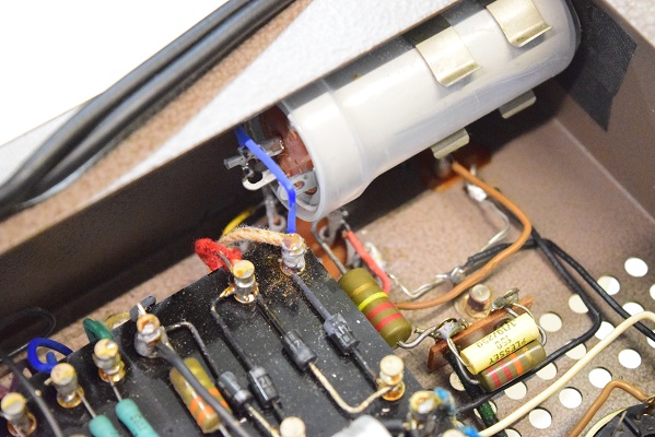 高圧整流ダイオードを4本とも新品に交換し、パンクした電解ブロックコンデンサーも交換します。