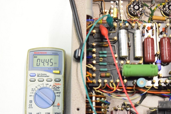 同じダイオードの逆方向です。こちらも4.45MΩの導通がありこのダイオードは不良です。