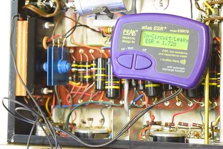 初期型の電解ブロックコンデンサーです。一部ESRはすこし高いもののまだ使えそうです。