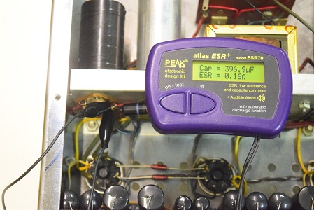 こちらはバイアスの電解コンデンサーです。容量がすこし足りない状態です。