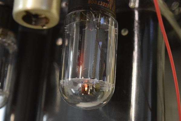 基板上のバンブルビーを全て交換し、電源回路も主なコンデンサーを換え電圧を計っていると上の画像の様に出力管が赤くなってきます。バイアスも半分位の電圧しか無いので残していた大きな160Pも全て交換しました。
