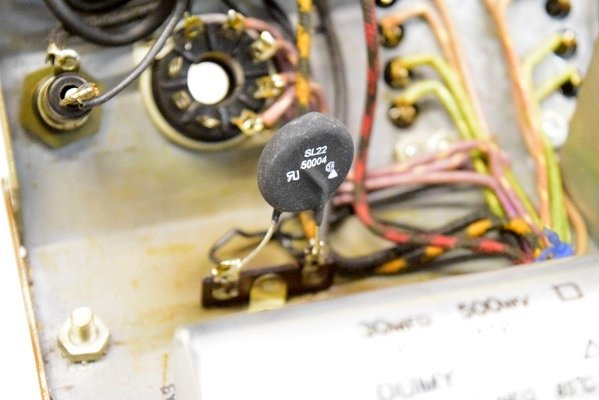 検査では良品だった電源サーミスタは電源を入れるとパチッと音がしてターミナルが飛びました。この為上の画像の様に新品に交換しました。