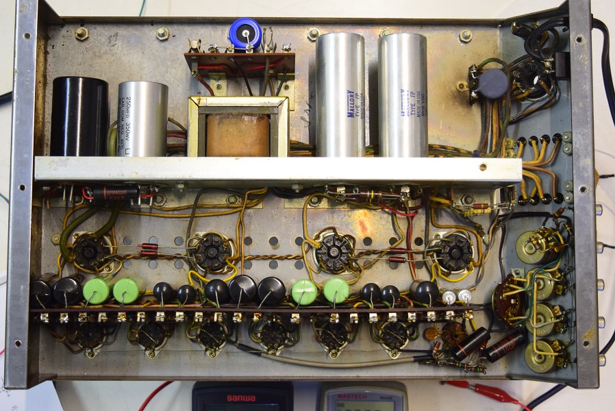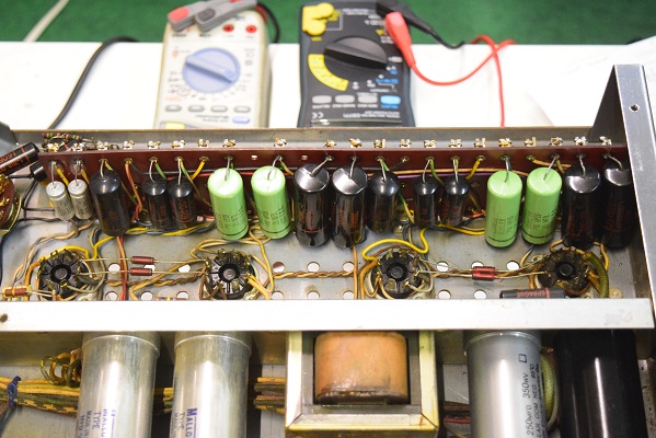 初段管のカソードバイパスコンはマランツ純正SPRAGUE製の新品に交換しました。繋いであった不要なリード線は全て撤去しきれいにしました。