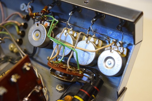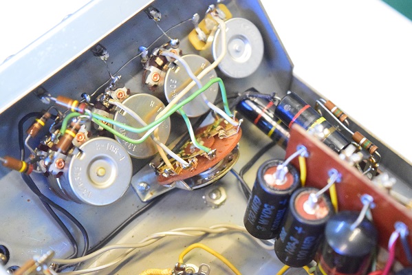 入力ボリュームを中央2個、CTSの新品に交換しました。MC275オリジナルの入力レベル調整ボリュームは軸が樹脂のCTSが純正で使用されていますが、経年劣化で樹脂が膨らみ回らなくなっていました。