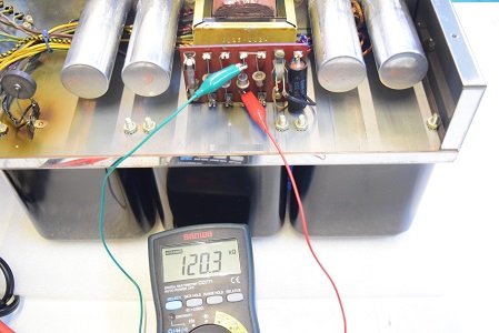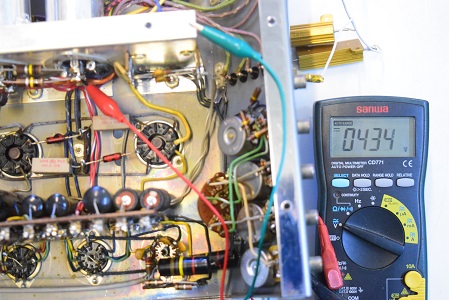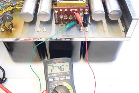 出力管のプレート電圧です。4本とも430〜433Vを示し良好です。