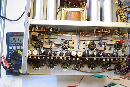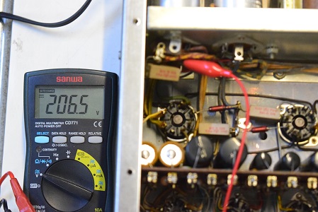 高圧B1です。438Vを示し充分な値です。レストア前より少し落ちていますが、以前は電圧を上げるために無理矢理改造されていました。
