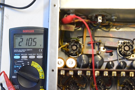 高圧倍電圧のもう片側です。210.5Vを示し良好です。