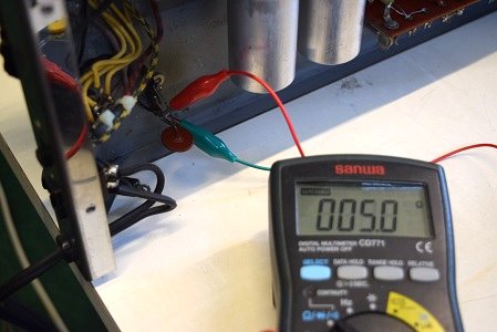 ← 左の出力管2本です。それぞれ445V,444Vを示し良好です。