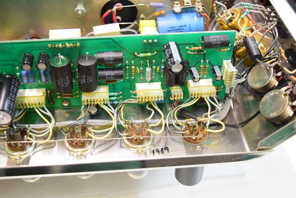 内部です。電源廻りのブロックコンデンサーが交換されています。