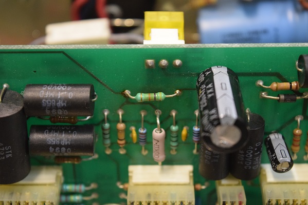 不良の抵抗を交換するとともに左右の当該抵抗を3本交換しました。焼け焦げていた抵抗も交換しました。