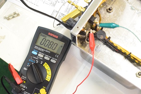 この画像の測定器の表示は18.92MΩを示し不良です。良品は4100MΩ以上無限大です。