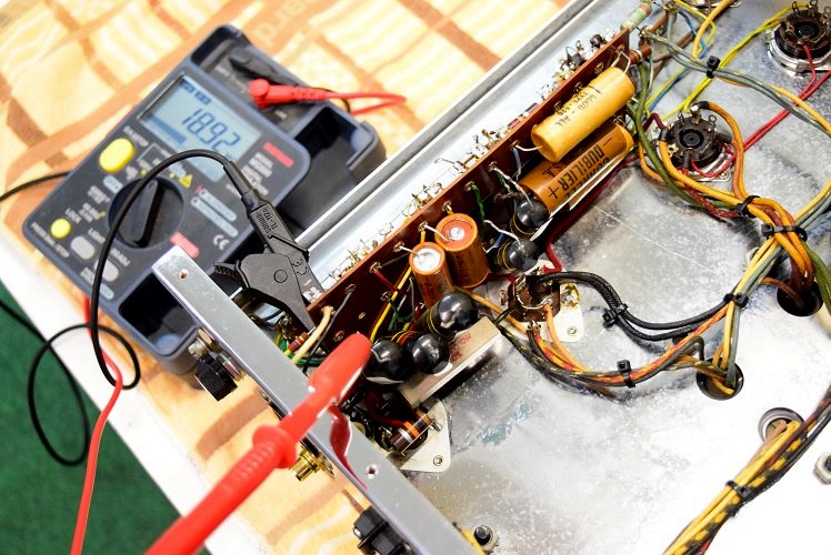 内部は殆どオリジナル状態です。ただ、前回他でのレストアで電解ブロックコンデンサーを2本とも交換されています。