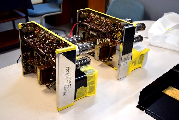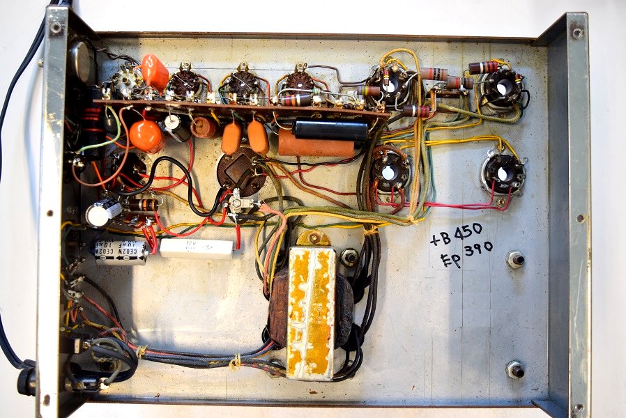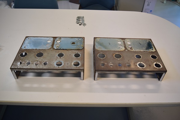 トランス類は錆ででこぼこでしたが、焼付けの再塗装を施し新品同様になりました。ラベルも版を起こし綺麗になりました。