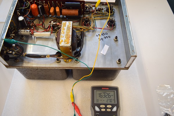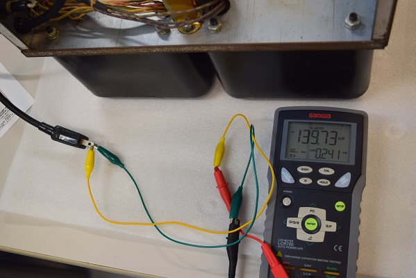 ★この後、トランス類が生きているか配線を外した後でインダクタンスと交流抵抗を測ります。ダメなら巻き替えを行います。