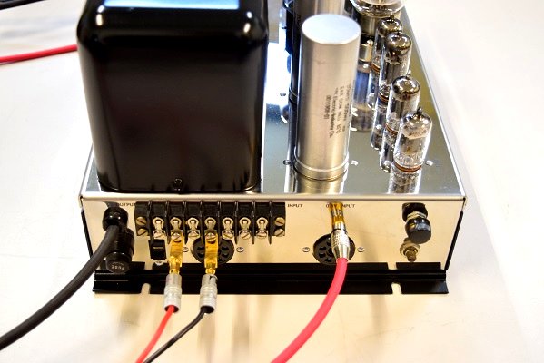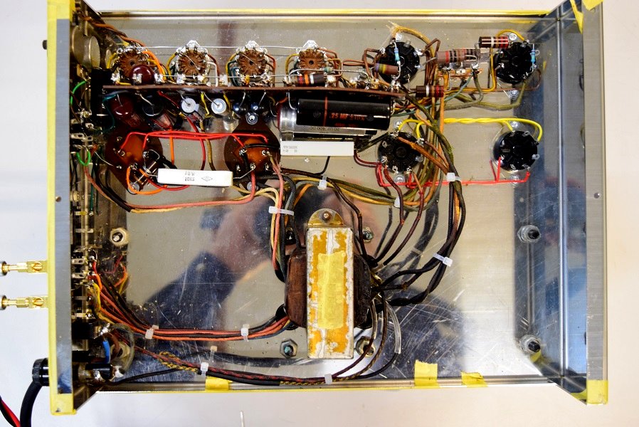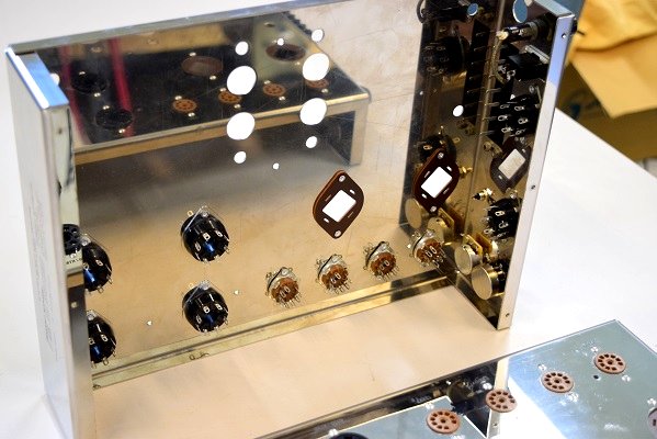 真空管ソケットやボリューム、つまみ、入出力端子はオリジナルと同じ仕様の新品です。ソケットは全てリベット留めです。