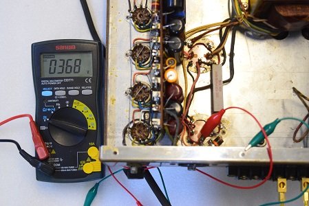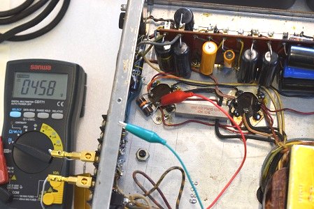 レストア前はこの電圧が高圧B1よりも高かったのですが、やはり電解ブロックコンデンサーを交換すると正規の電圧になりました。