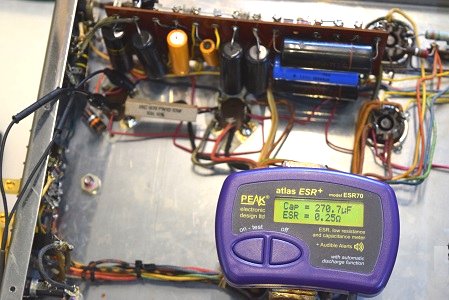 最初の検査では殆どのコンデンサー類を交換する予定でしたが、レストア中の部品を外しての再検査でまだ充分使えるものもたくさん有ったので、オリジナリティ尊重のため電源回路以外の交換は最小限に留めました。