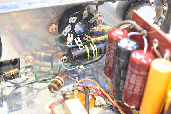 内部はあまり改造はされていません。消耗品であるブロックコンデンサーもオリジナルのままです。