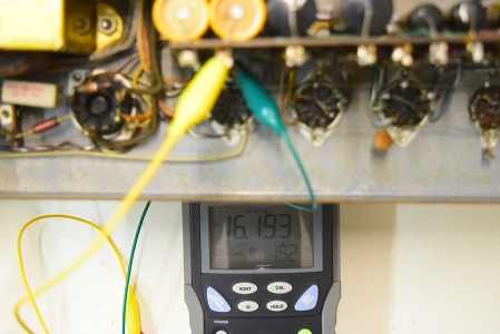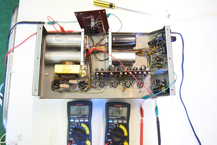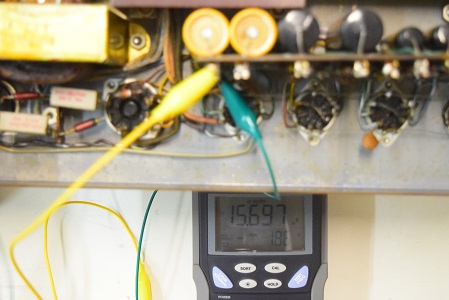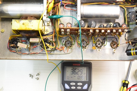 左テスターはバイアス電圧で-153.9Vを示し良好です。右テスターは高圧B1です。441Vを示し良好です。