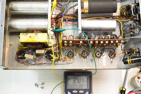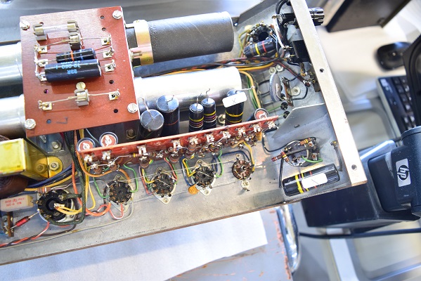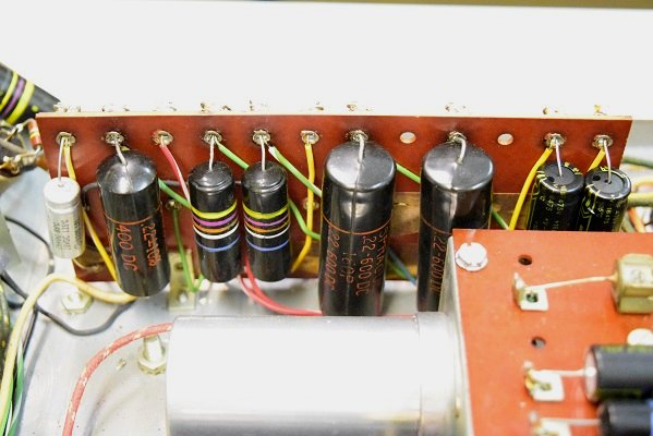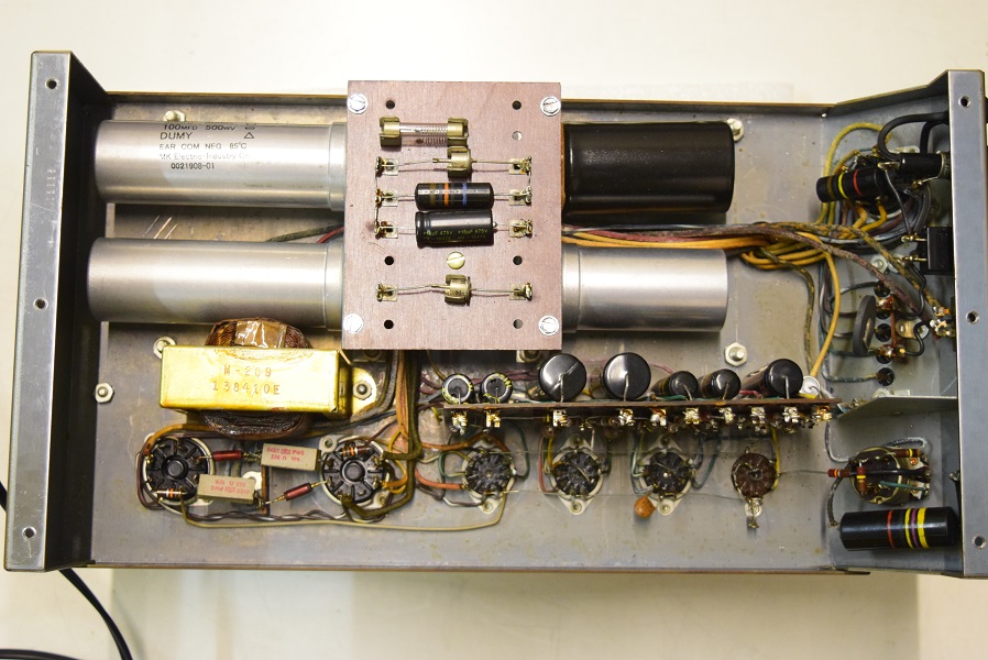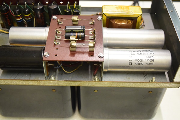 電解ブロックコンデンサーを4本ともオリジナル仕様の新品に交換し、他の小さな電解コンデンサーも全て交換しました。バンブルビーの殆どは良品でしたが初段管の0.22uF/400のみブラックビューティーに交換しました。
