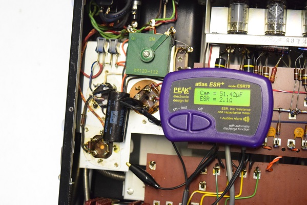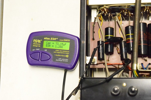 フォノイコのカソードバイパスコンは左右とも値がかなり膨れています。 ESRもかなり高めです。