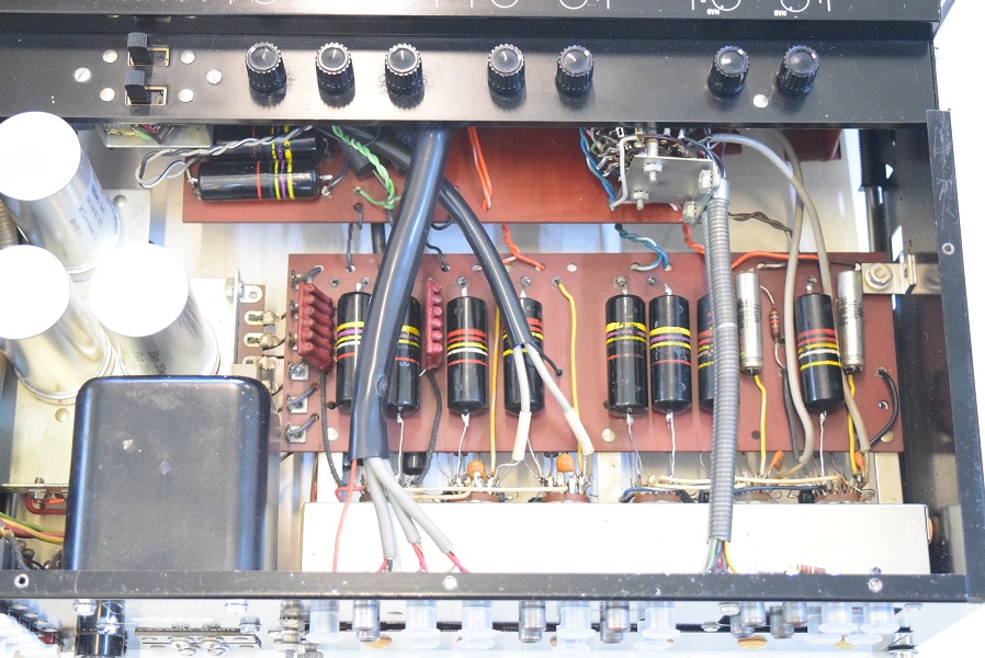 裏側です。真空管の裏の横一列の小さなカップリング4本と0.022uF/200V 2本もバンブルビーに交換しました。