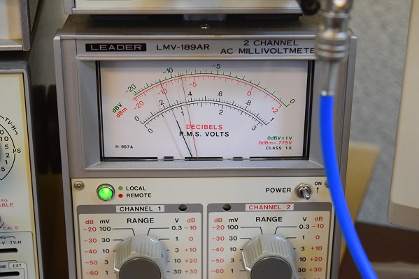 低周波発振器から1kHzの正弦波を10dBで左右のAUXに出力し、真空管のグリッドの電圧を計ります。