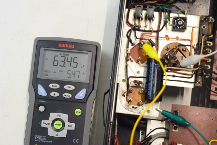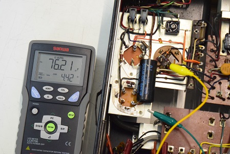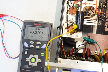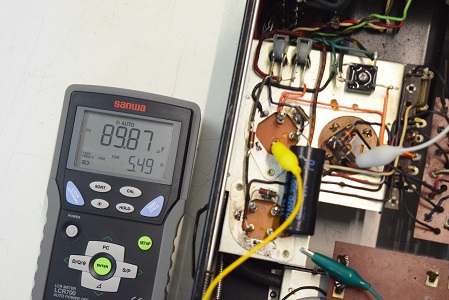 低圧のブロックコンデンサーです。ESRがかなり高い状態で不良です。こちらも半年前にこちらで交換したものです。