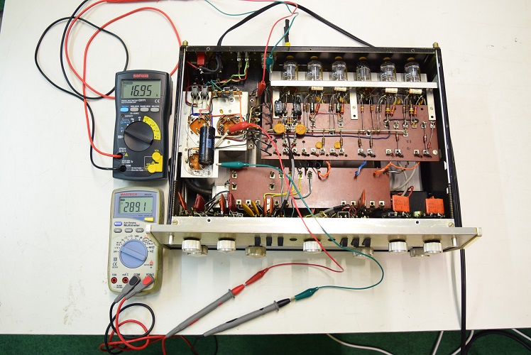 恐らくこの異常に低いヒーター電圧と脈流の乗った高圧電圧が影響してフォノイコのカソードフォロア管のバイアス不良を起こし真空管が不良になったと考えます。