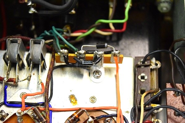 不良になった電解ブロックコンデンサー2本を交換し、低圧ダイオードのブリッジ回路を組みました。