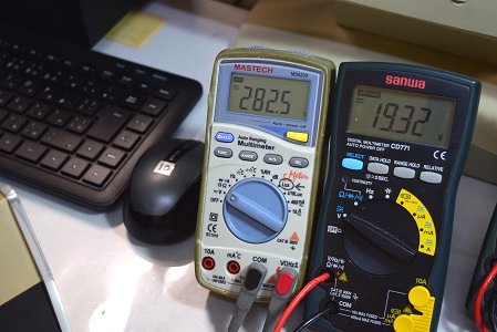 こちらのテスターは低圧整流ダイオード直後です。28.35Vで良好です。