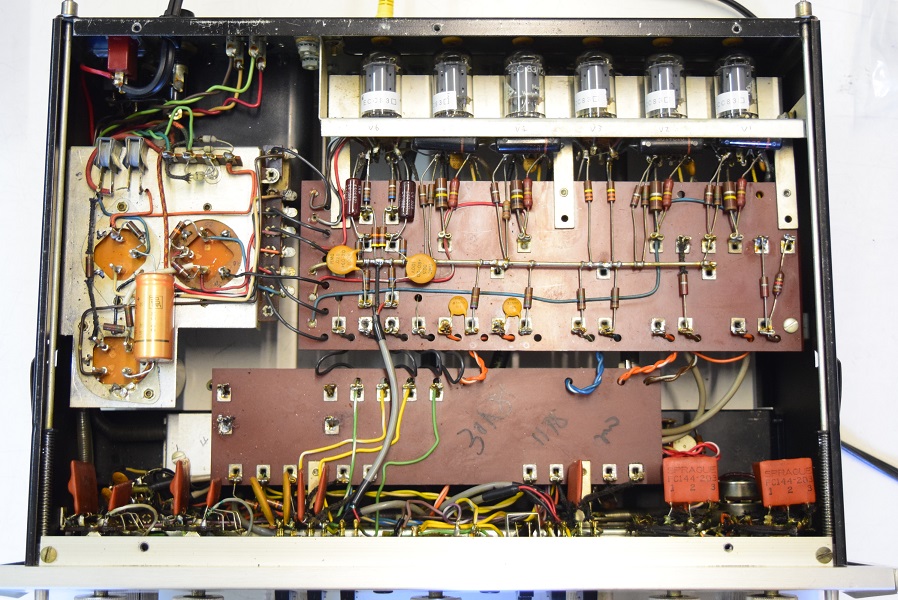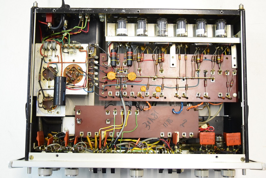 電源回路は電解ブロックコンデンサーを3本ともオリジナル仕様の新品に交換しました。ラインアンプのブラックビューティーは音の良い代品の新品に交換しました。