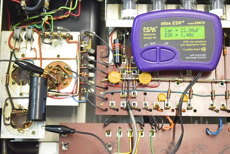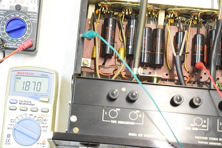 こちらはC22の初期型なのでカップリングコンデンサーは殆どバンブルビーの筈ですが、以前どこかでレストアの際に全てブラックビューティーに交換されています。しかも耐圧の違う大きいものに交換されています。