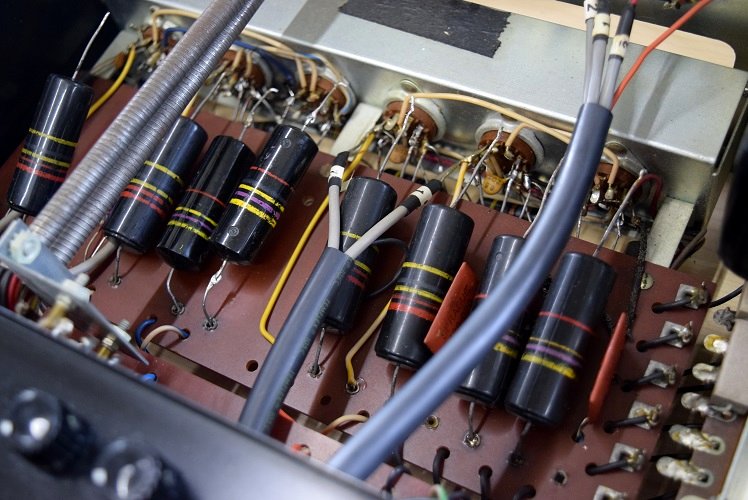裏面です。電源回路は前回こちらでレストアし全てオリジナル状態です。各カップリングコンデンサーは全てバンブルビーです。