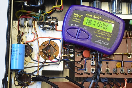 フォノイコのカソードバイパスコンです。2本とも以前のレストアで交換されています。