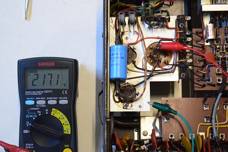 高圧の1段目ですが、画像のように静電容量はあるもののESRが異常に高くコンデンサーの機能を成していません。